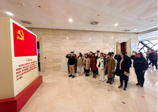 参观结束后,全体党员来到五楼大厅重温入党誓词。大家面向鲜红的中国共产党党旗,高擎右拳,目光坚定,向革命烈士致以崇高的敬意,深切缅怀革命先烈为国家和人民不畏牺牲、浴血奋战的革命精神。铿锵有力的誓言表达传承使命、勇担重任的决心。