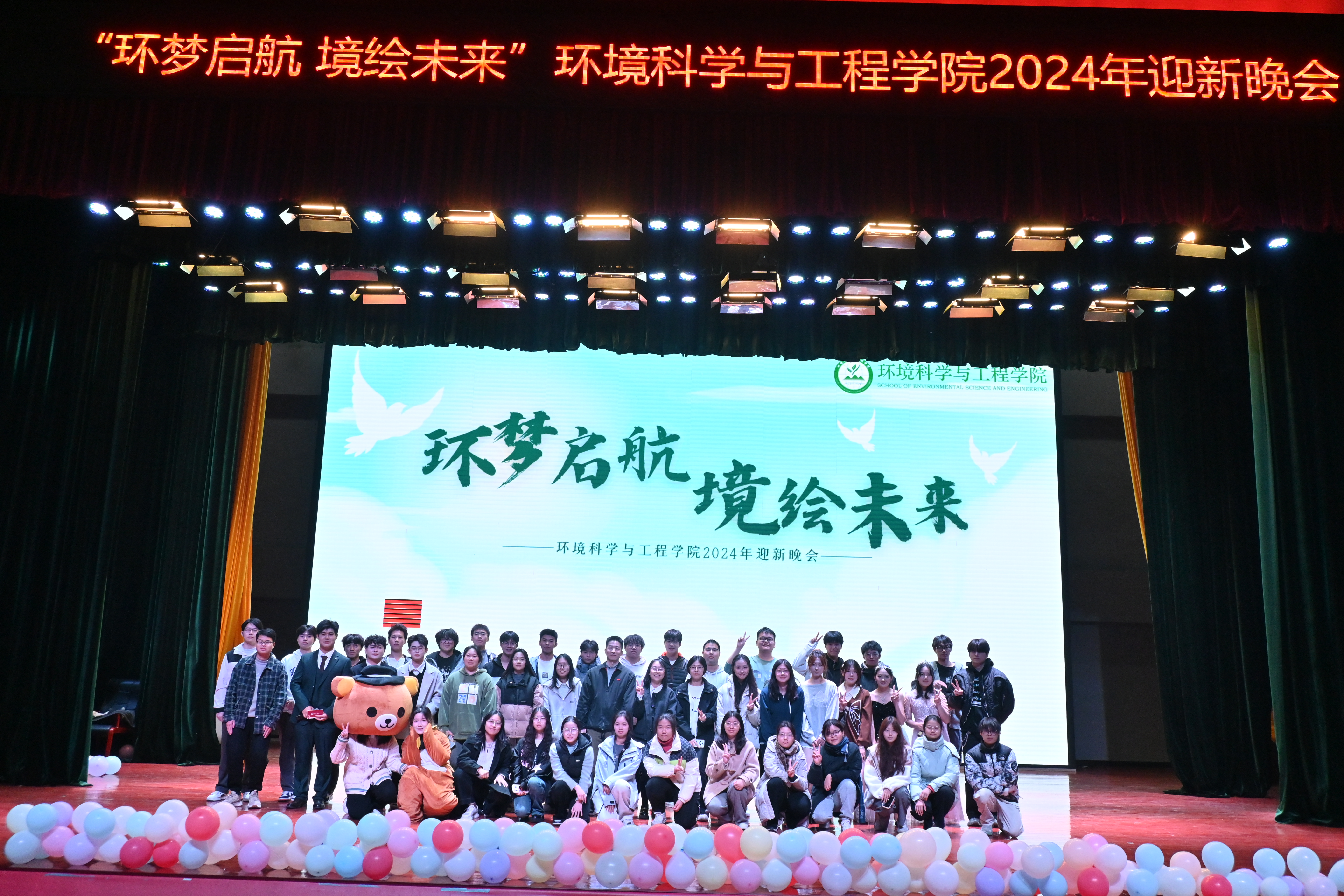 12月1日晚,环境科学与工程学院在大礼堂二楼成功举办了主题为“环梦启航,境绘未来”的迎新晚会。学院党总支副书记姜欢和学生工作办公室主任马丽娜出席本次晚会,与同学们共同见证了这场视听盛宴。