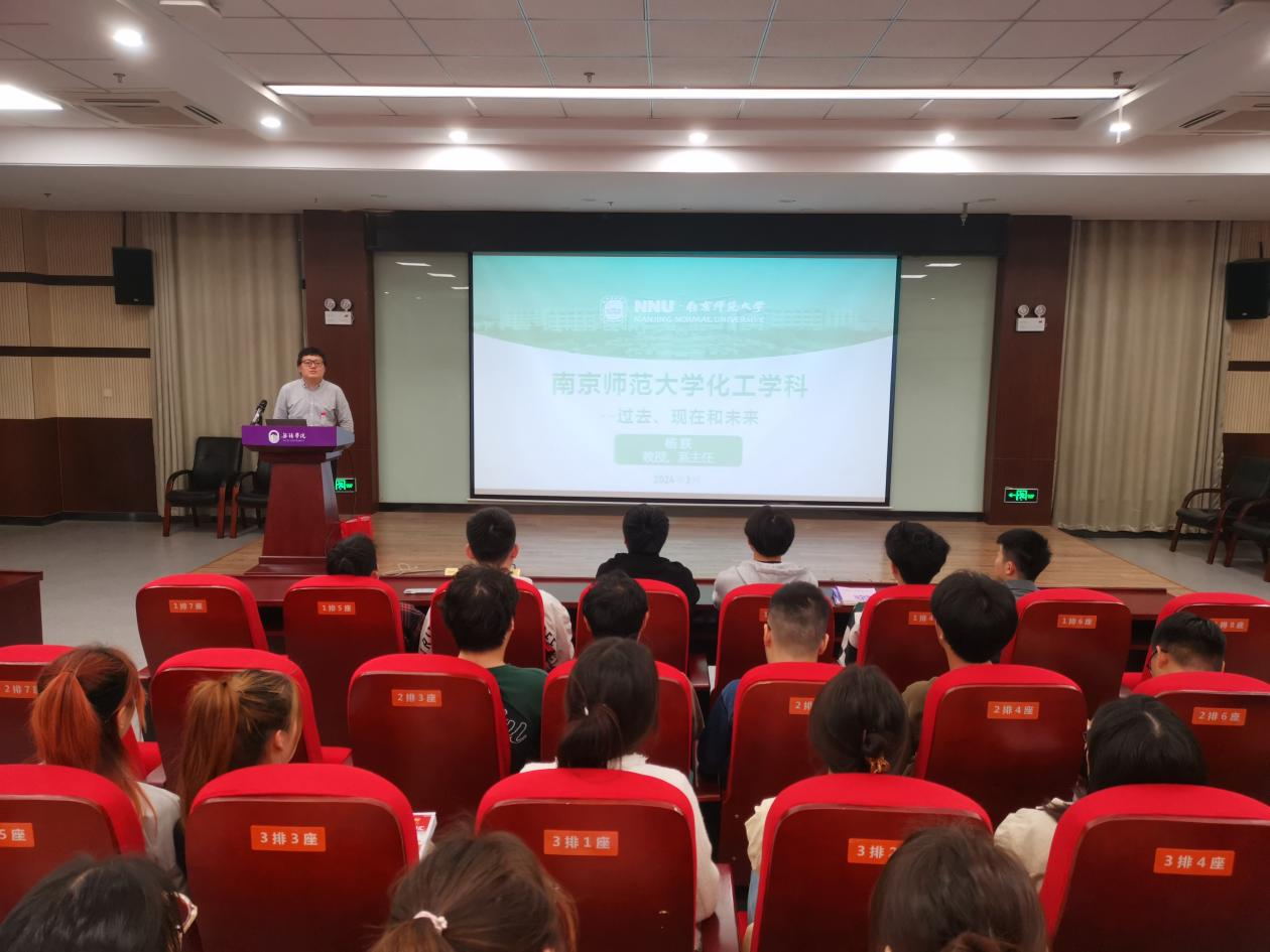 钱杰书对两位教授做了简要的介绍,鼓舞同学们设立远大的目标、付出坚实的努力。杨朕重点介绍了南师大化学与材料科学学院的办学历史、学科发展现状,以及化学工程与技术、材料与化工两个专业的考研招录情况。在讲座中,他结合自身的学术背景和教学经验,深入浅出地为同学们讲解了考研的重要性、准备策略以及应试技巧,为即将面临考研的学子们指明了方向。刘俊华着重向大家强调了化学工程与技术、材料与化工、化学这三个专业的区别,提醒同学们合理选择目标和方向。他向同学们介绍了自己的课题组研究方向以及往届毕业生就业去向,并对我院学子的报考表示热烈欢迎。