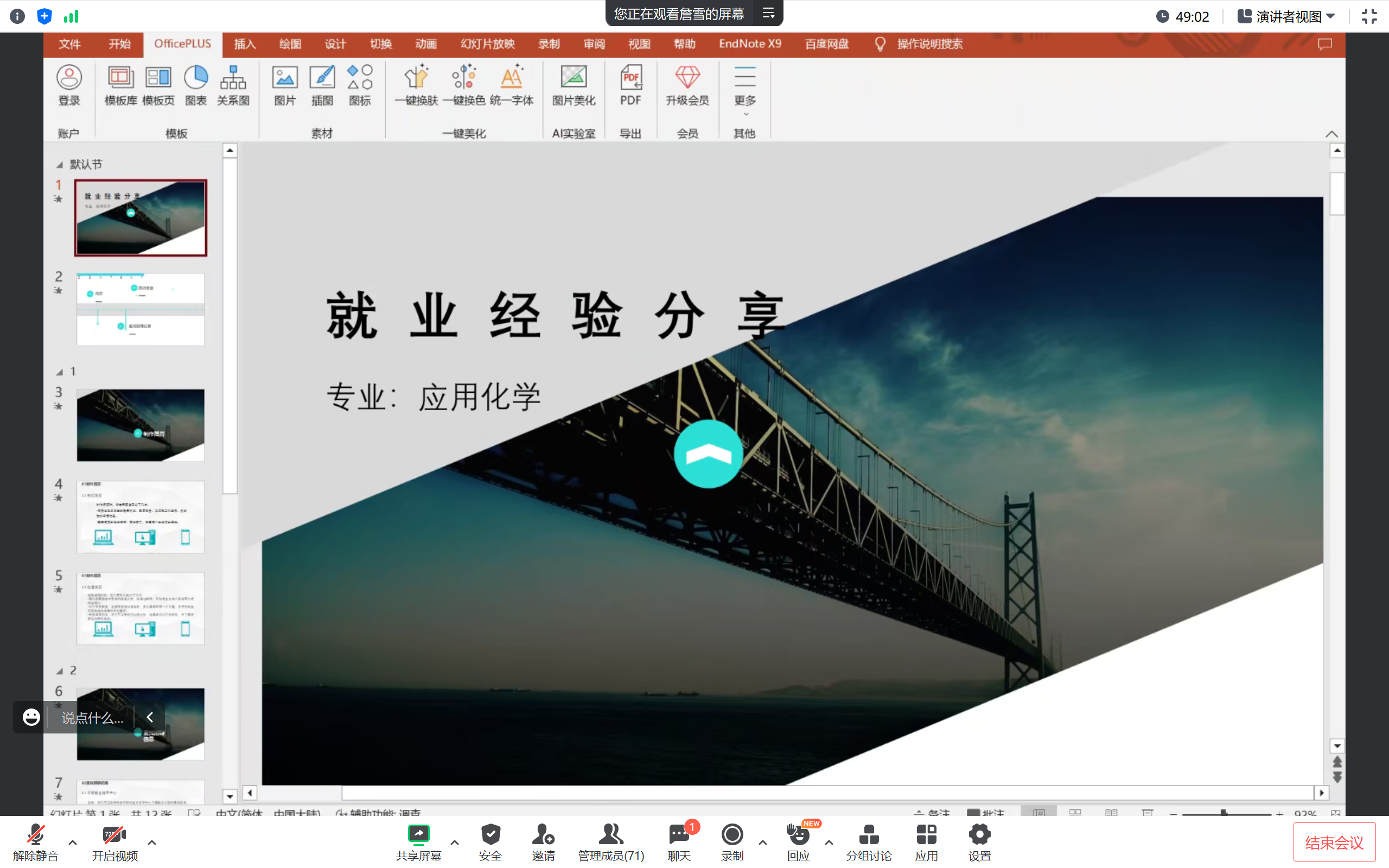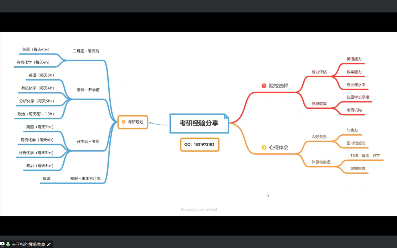 王于衔和宋阳两位同学分别考入华东理工大学、中国矿业大学,他们结合自身的考研备考经历,为同学们重点介绍了院校的选择、复习进度安排、报班和资料选择、初试和复试的要点及注意事项。詹雪同学成功入职中国电子科技集团第五十五研究所,她结合简历制作、初试和面试准备等内容为同学们介绍了就业求职的经验。