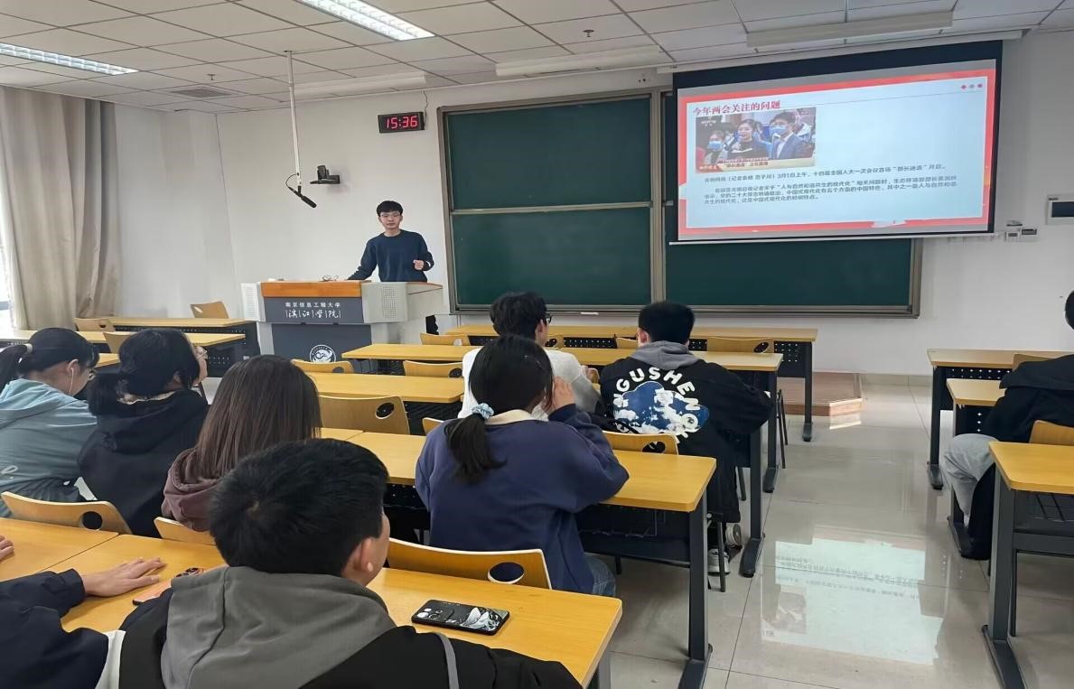 2023年全国两会顺利召开,为宣传两会精神,加强同学们对于两会知识的了解。我院22环科2班于3月9日开展以“聚焦两会,关注民生”为主题的团课,班级全体同学参加。