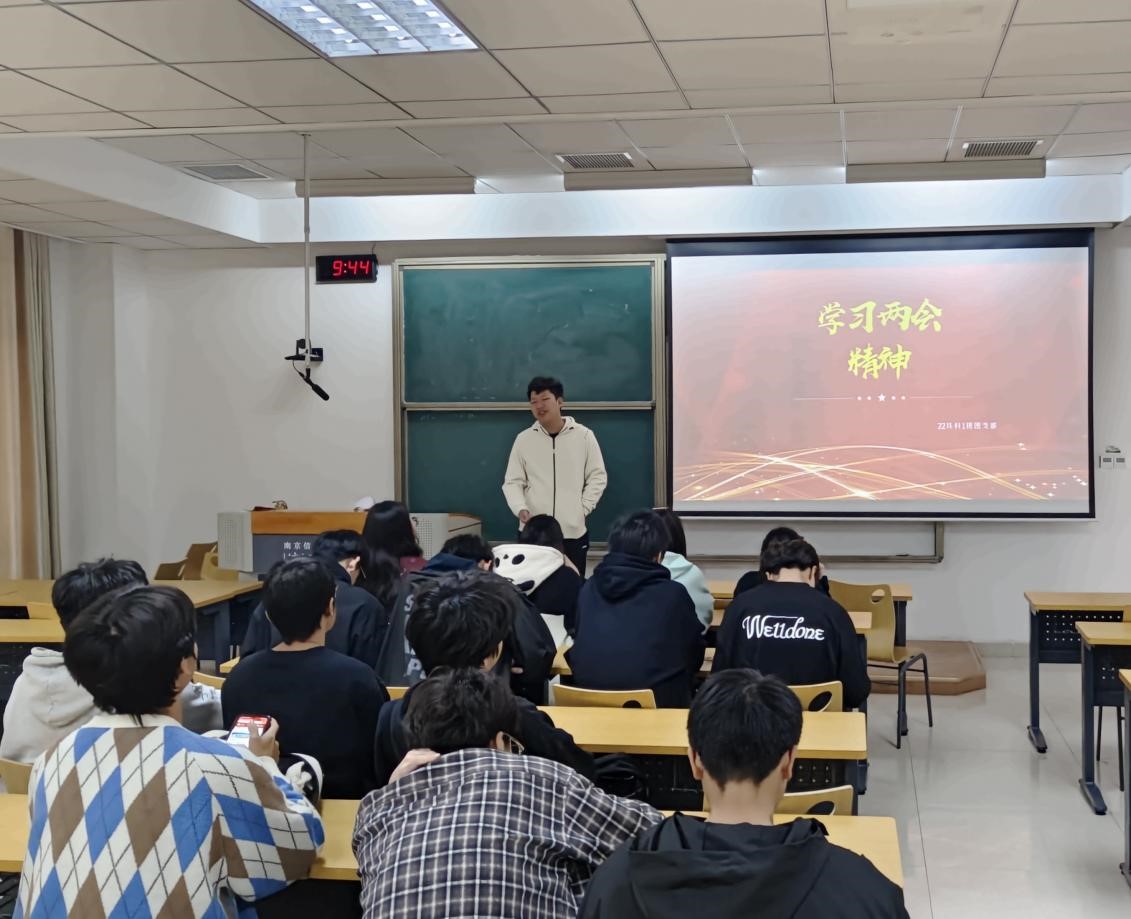 为学习贯彻两会精神,弘扬习近平新时代中国特色社会主义思想,2023年3月8日上午9点40分,22级环科1班在敏学楼310教室开展学习两会精神主题团课,班级全体同学参加。