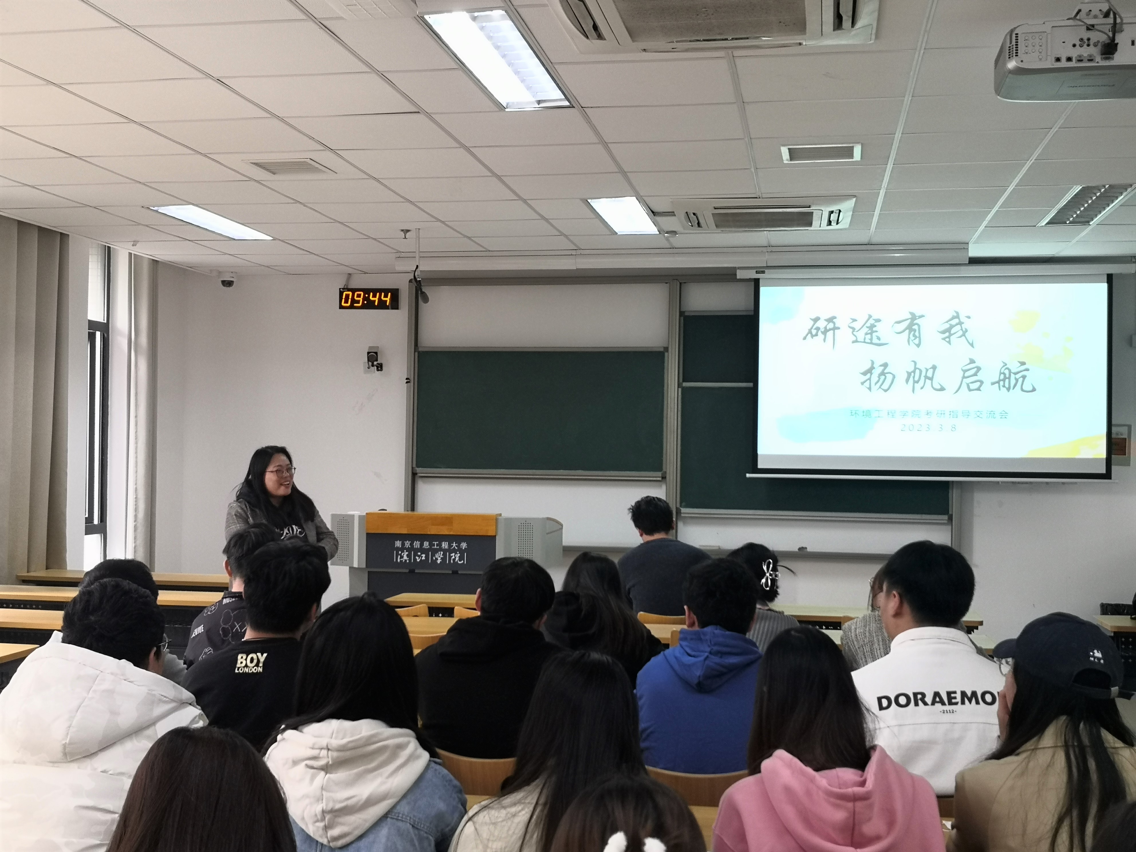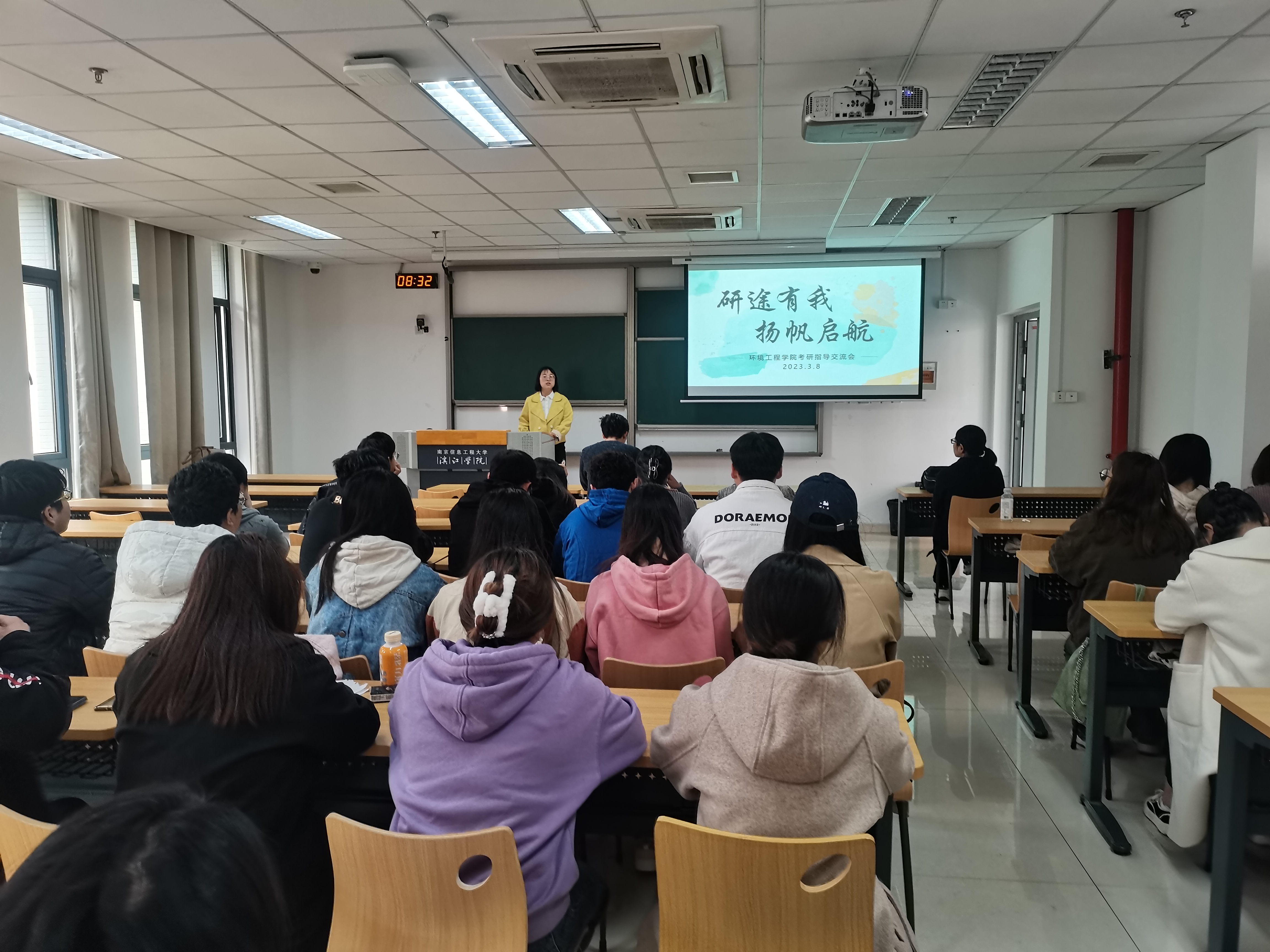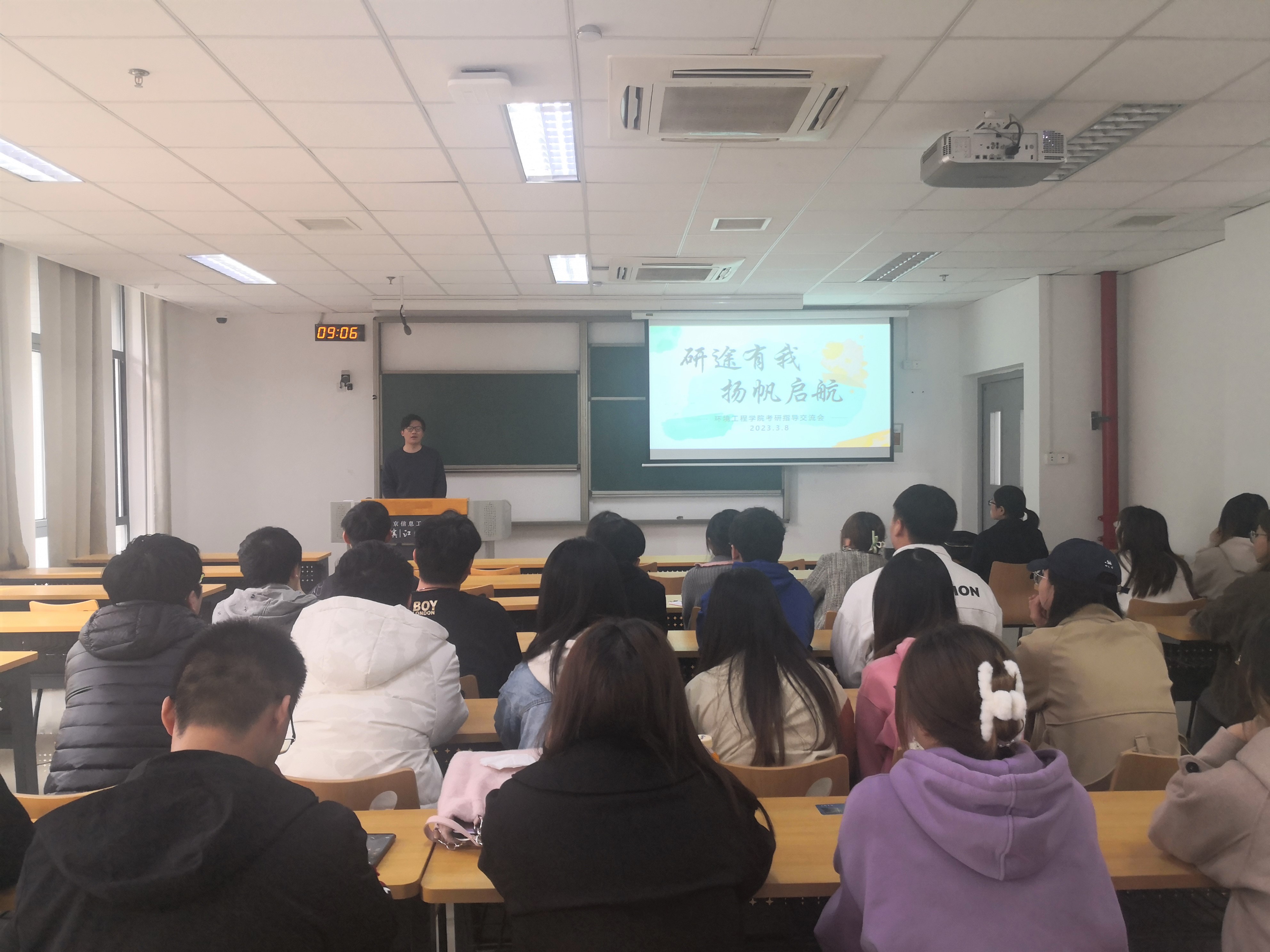 3月8日上午8点半,环境工程学院在尚美楼203开展“研途有我,扬帆起航”考研指导交流活动。院长助理卜久贺,系主任李海玉,分团委书记马丽娜,辅导员戚名扬,班主任陈杰,以及学院20级全体学生参加活动。