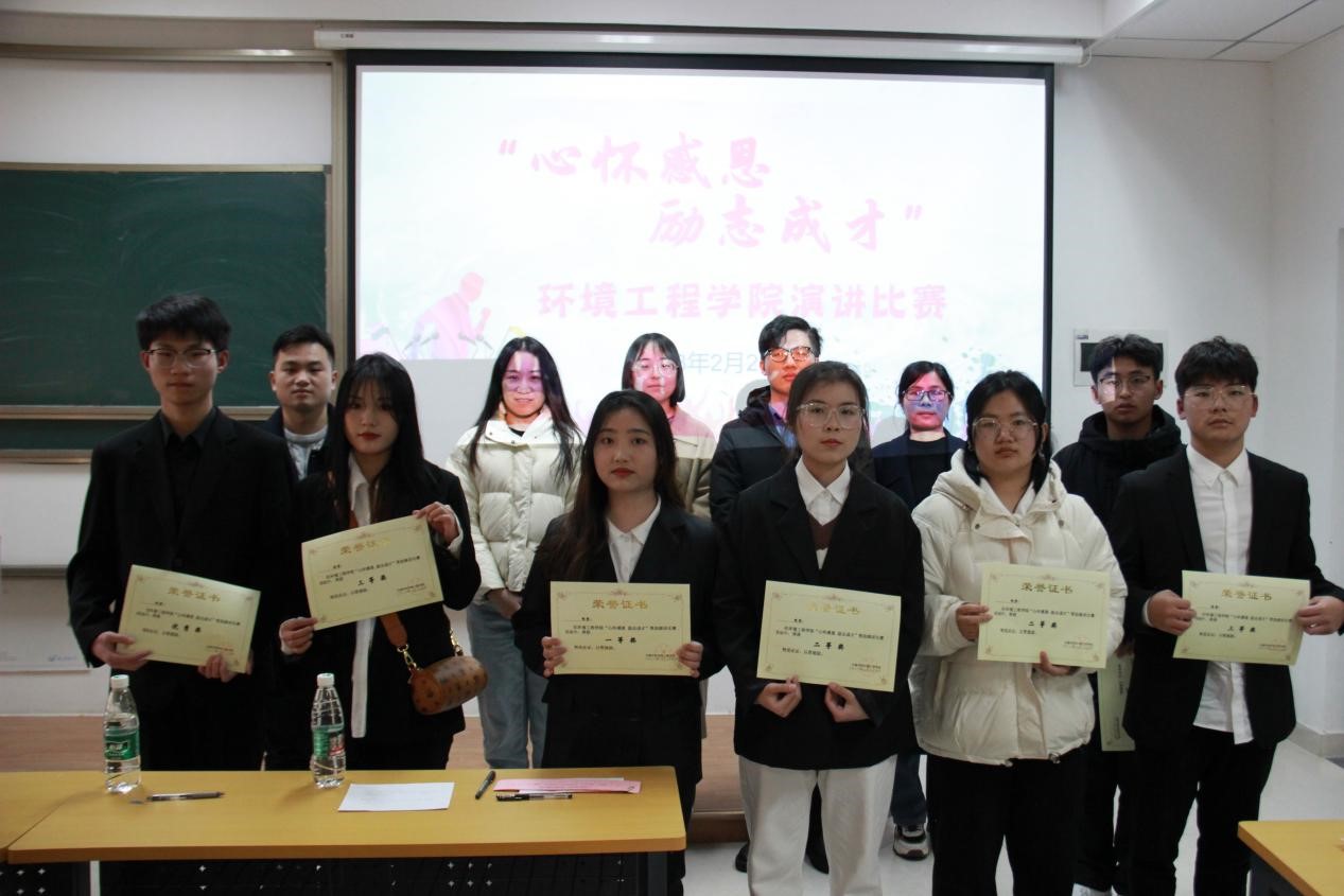 为引导学生学习贯彻党的二十大精神,大力宣传学生资助政策及学校资助育人成效,进一步激励广大学生爱党爱国情怀。环境工程学院组织开展了“心怀感恩,励志成才”主题演讲比赛及征文比赛活动。2023年2月25日下午,学院在敏学楼106成功举办演讲比赛,由院长助理卜久贺、系主任徐恬、李海玉、分团委书记马丽娜、辅导员戚名扬担任评委。征文比赛由学生工作办公室评选得出。