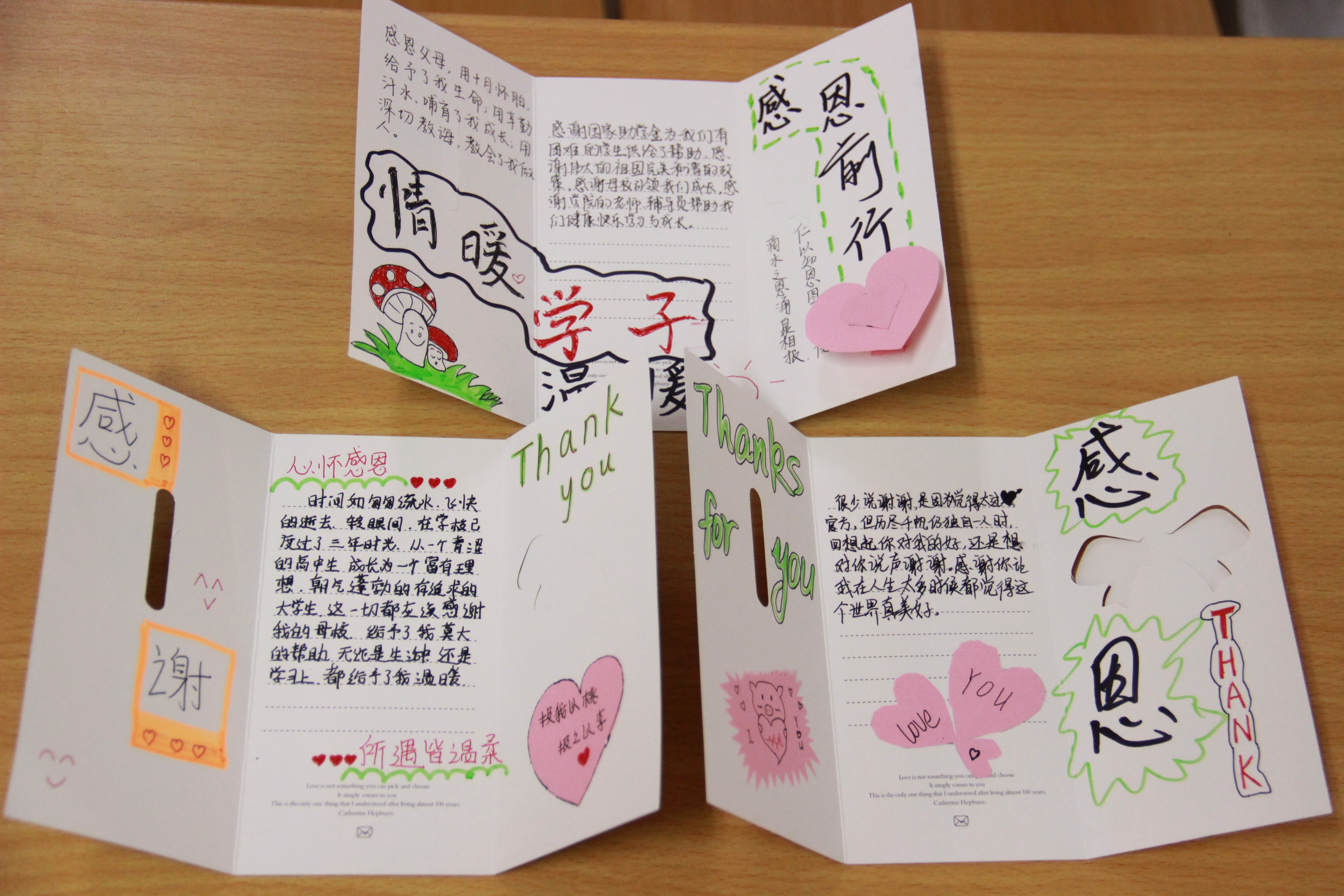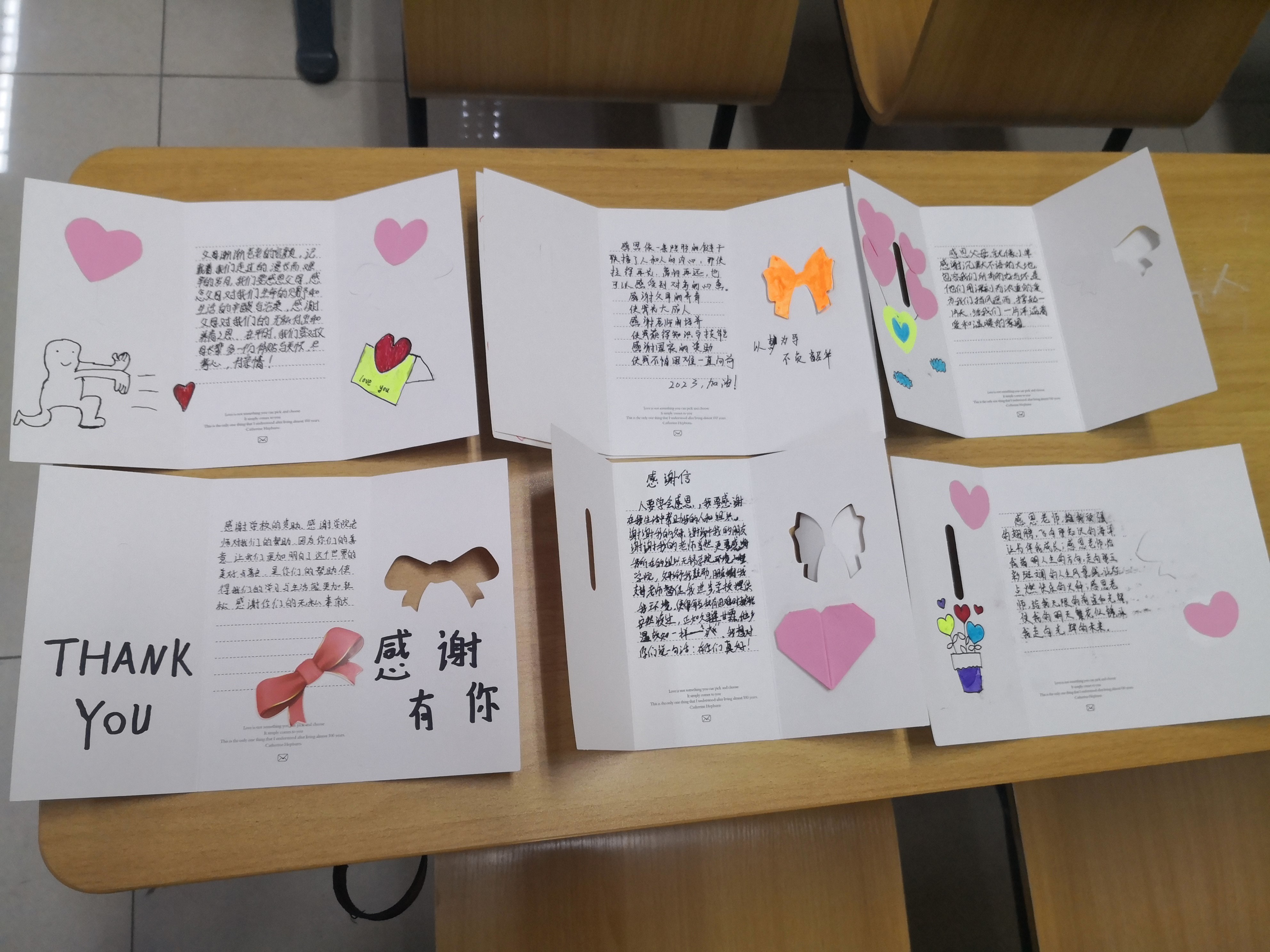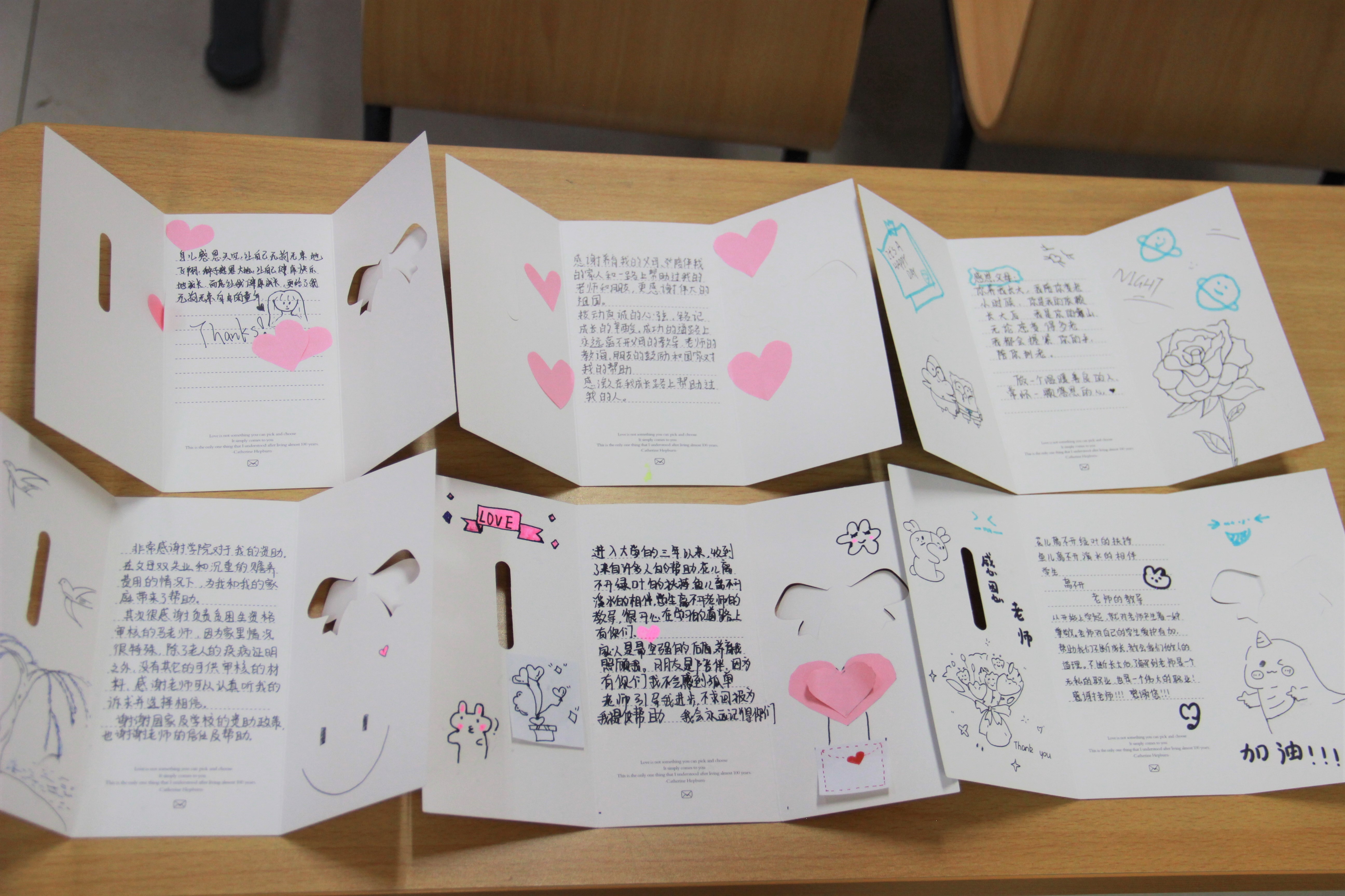 接着,学院现场组织了“手书励志感恩卡”的活动,同学们亲手写下对老师、亲友、同学、学校的感谢之情,表达着美好的祝福,同时书写自己励志奋进的决心。虽然只是一张小小的卡片,但却充斥着温暖人心的巨大力量,大大增进了师生间、亲子间、同学间的感情。