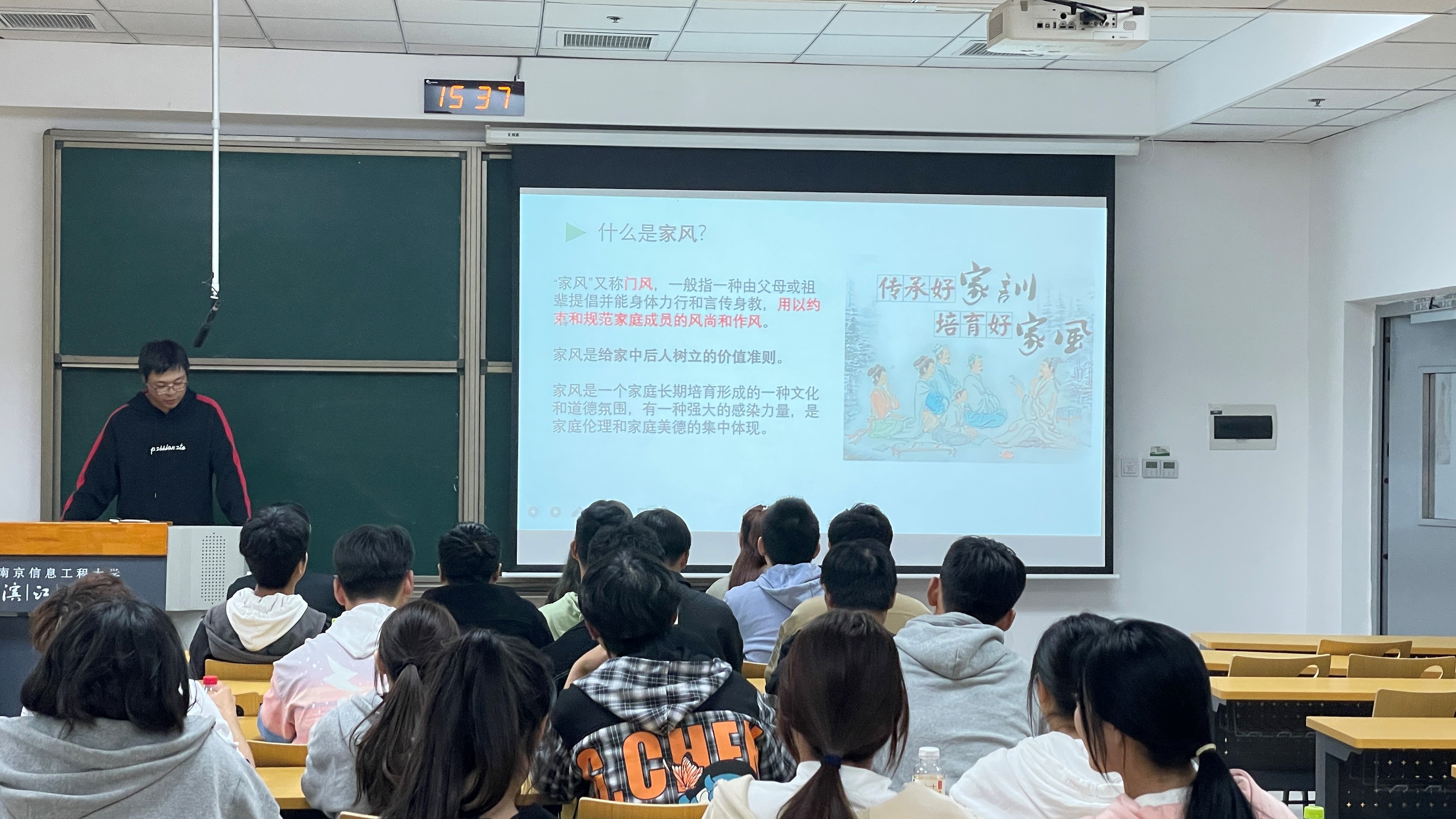“寒门家风好,少年早成才”,为贯彻学习习近平总书记对家风建设的重要论述精神,10月7日晚,我院21应化2班于勤学楼110召开家风建设主题班会。本次班会由班长马钰杰主持,全体班级同学参加。