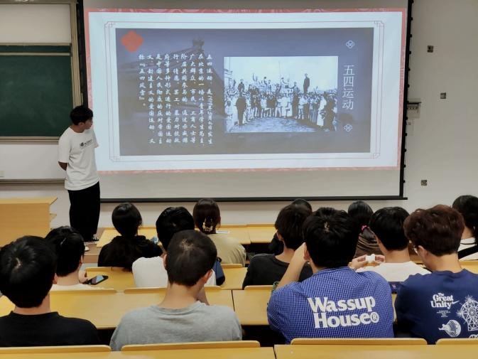 活动中,首先由主持人王嘉一朗诵毛主席的作品《忆秦娥·娄山关》拉开序幕。接着,王嘉一同学向大家详细介绍党的青年历史进程以及党对当代青年四大期望,并且同学们积极发表自己对''五四运动”的看法。活动最后,王嘉一同学向大家介绍了新时代在中国共产党的带领下我国取得的伟大成就,以及新时代青年运动健儿的辉煌战绩。