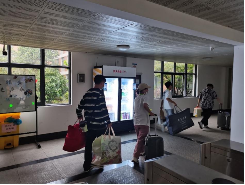 报到现场,为避免学生集中排队提高报道效率,学校对符合报到条件的新生,采取“学卡通”扫码方式进行报到。学院分别在各迎新点安排了志愿者,并准备了小推车和摆渡车,帮助新生搬运行李、完成报到工作。