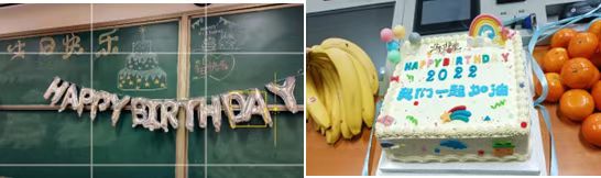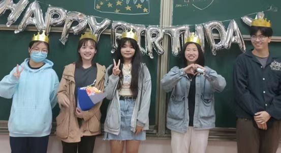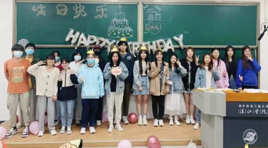5月1日学院生日会上,学院为“寿星们”定制了生日蛋糕和水果,在同学们精心布置下一个个气球排列整齐,黑板上的字画风趣可爱,伴随着同学们的欢呼声和欢乐的音乐声,五位同学纷纷收到了大家祝福,在同学们欢快的歌声中许愿望、灭蜡烛,大家纷纷合影留念记录青春的美好瞬间。