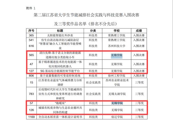恭喜我校学子首次在江苏省大学生节能减排社会实践与科技竞赛(即节能减排竞赛)中荣获佳绩,此次参赛院校由东南大学、苏州大学、无锡学院等省内近50所高校参赛,其中我校3项作品入围决赛、2项作品获得三等奖,参赛获奖率近20%位于同类高校前列。