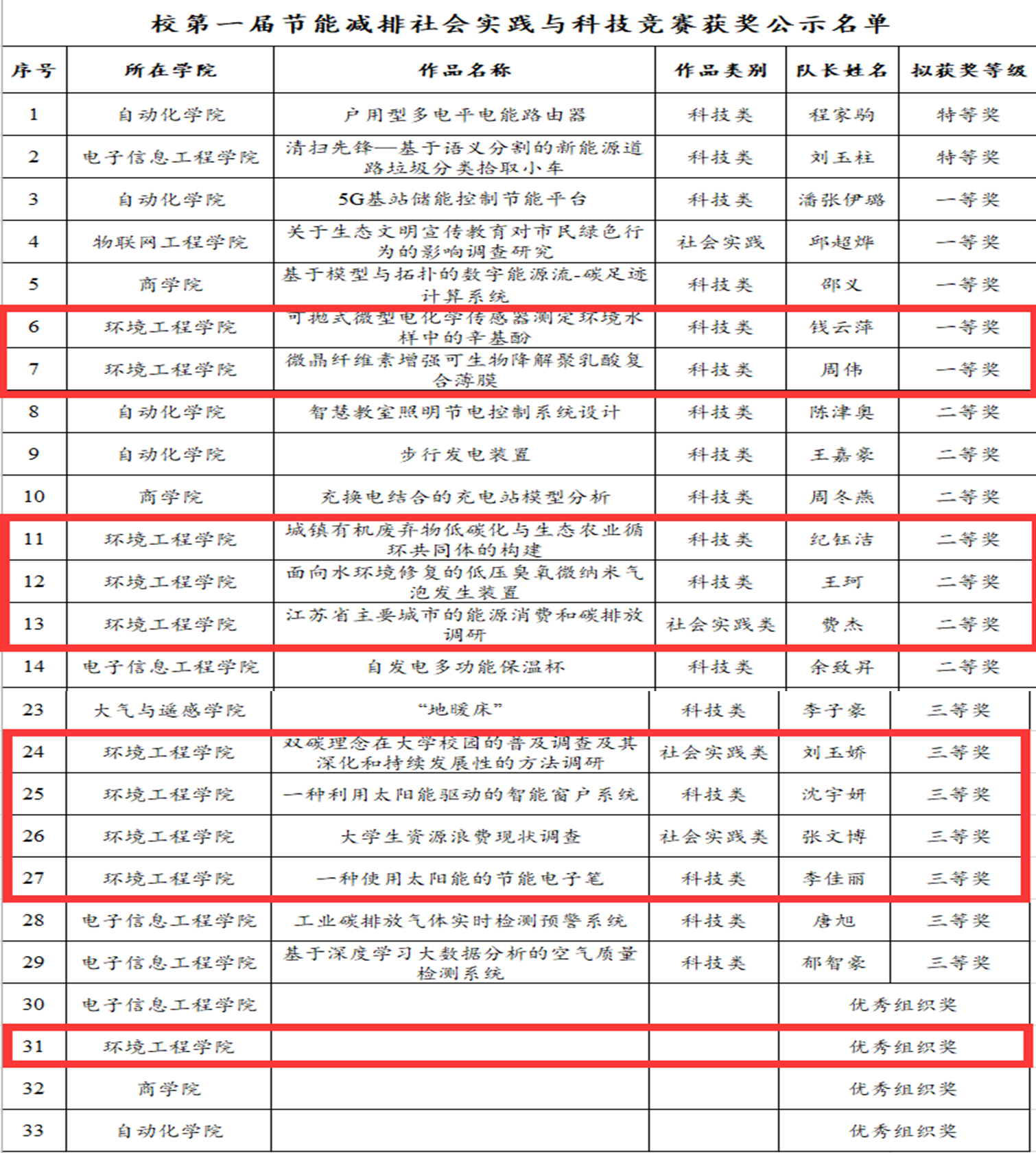 我校第一届大学生节能减排社会实践与科技竞赛获奖作品