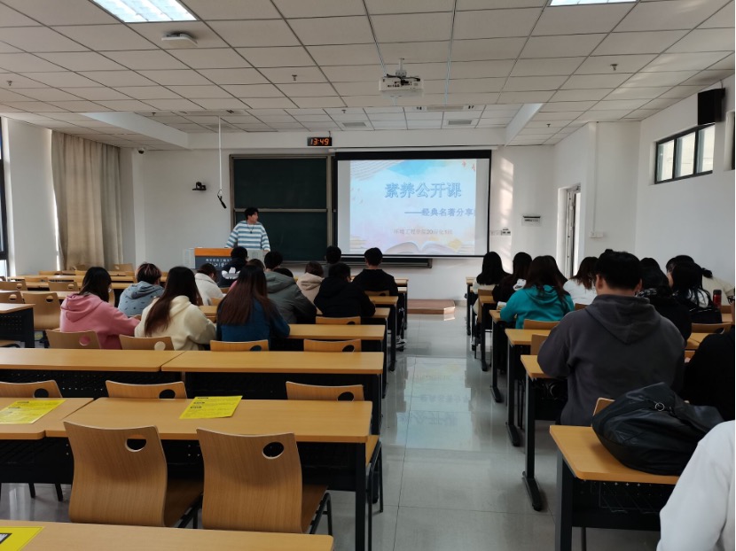为营造良好的校园文化和良好的学习氛围,倡导鼓励大学生养成良好的读书习惯。11月26日下午,20应化1班在勤学楼412开展以“经典名著阅读”为主题的素养公开课,由团支书主持,全体同学参加。
