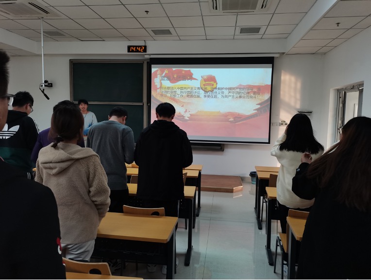 首先,在团支书的带领下,全体同学重温团歌、入团誓词,重燃同学们对党团组织的热情。
