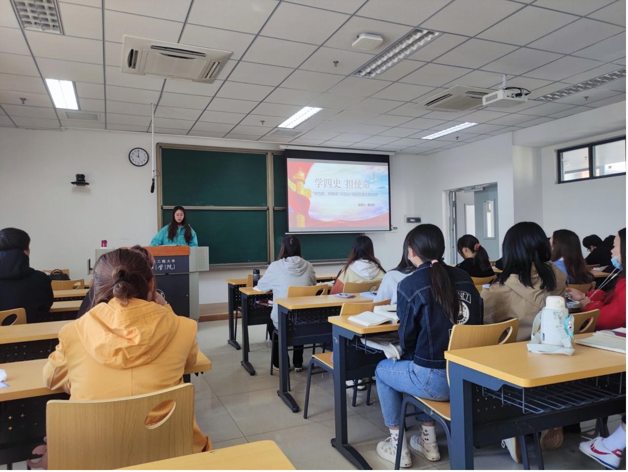 2021年11月12日上午,20应化1班团支部在敏学楼508开展了积极分子讲团课第一讲——“学四史,担使命”,本次主题团课由20级积极分子管裕欣同学进行宣讲,会议介绍了“四史”的主要内容,详细向同学介绍了党史发展历程,学习党史的重大意义。