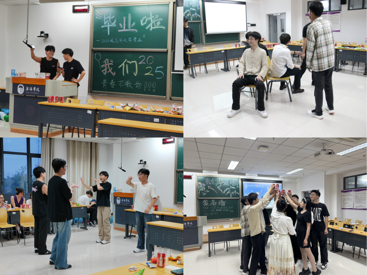 活动期间先后进行了薪火相传、上上签、听歌识曲、你画我猜、击鼓传花、抢凳子等游戏。现场,同学们合唱《纪念》、《起风了》、《再见》等曲目。紧张的游戏、欢乐的笑声让同学们一起度过了一段愉快的时光。最后环节,全体毕业生拿起可乐,共同举杯,为未来干杯,同学们互相表达着祝福、期待,以及对老师的感谢。晚会在一张张合影中落下帷幕。同学们在镜头前留下了最灿烂的笑容,这些照片将成为他们人生中最宝贵的记忆之一。