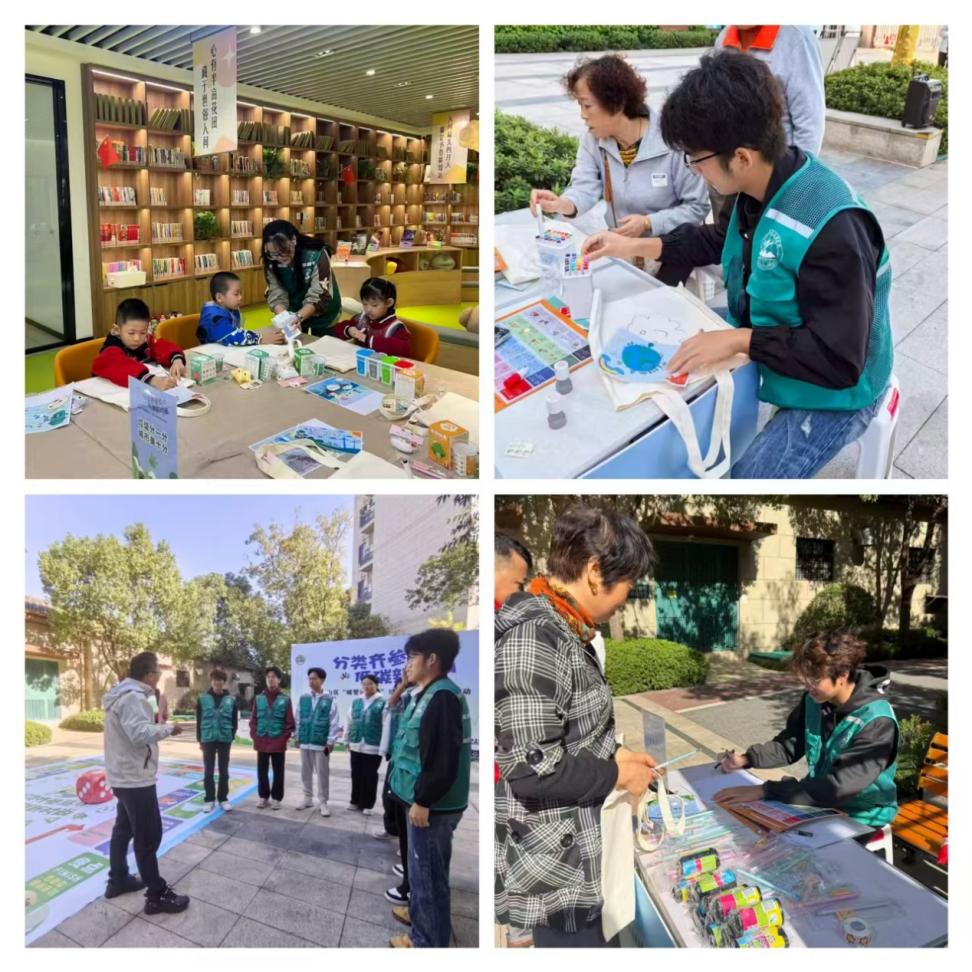 活动现场气氛热烈,众多居民热情参与。志愿者们身着统一服装,以饱满的热情和耐心的态度服务于活动现场,向居民生动形象地讲解垃圾分类的重要意义和具体方法。在协会成员的帮助下,“垃圾分类寻宝图”“主理人巡查体验”“垃圾分类飞行棋”“创意手工DIY”等系列活动项目顺利开展,在轻松愉快的游戏过程中,大家不仅收获了创意作品,更在欢声笑语中巩固了垃圾分类和环保知识。