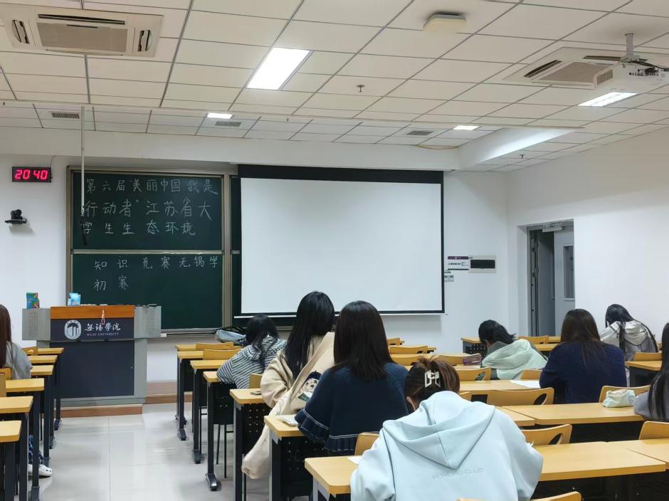 10月27日20时30分,第六届“美丽中国,我是行动者”江苏省大学生生态环境知识竞赛无锡学院校内初赛在敏学楼406顺利举行,共9支队伍35名同学参与本次初赛。