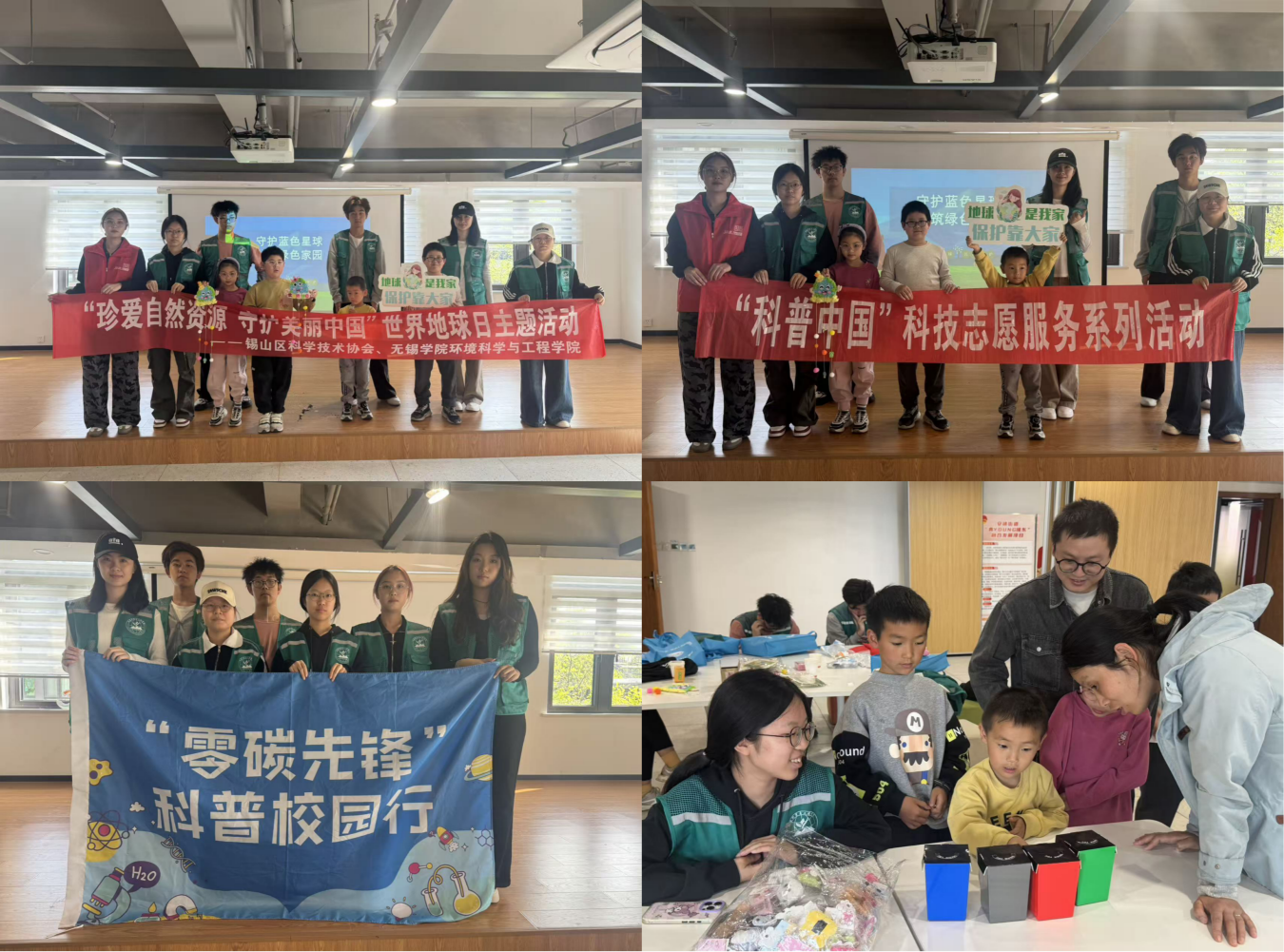 为迎接第55个“世界地球日”,引导青少年、大学生树立“尊重自然、顺应自然、保护自然”的生态文明理念,环境科学与工程学院联合锡山区科协、环保协会共同组织开展了世界地球日系列科普宣传活动,面向社区亲子家庭与在校大学生双向发力,推动环保理念入脑入心。