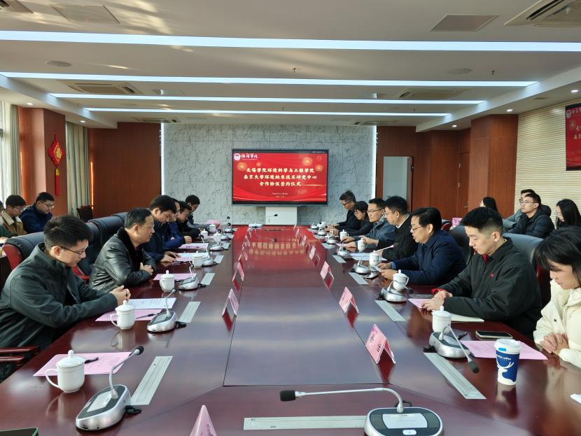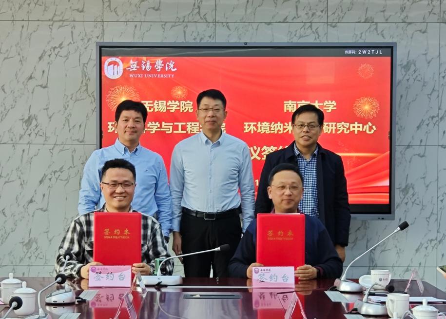 仪式上,无锡学院环境科学与工程学院钱杰书与南京大学环境纳米技术研究中心张炜铭分别代表双方签署了合作协议。
