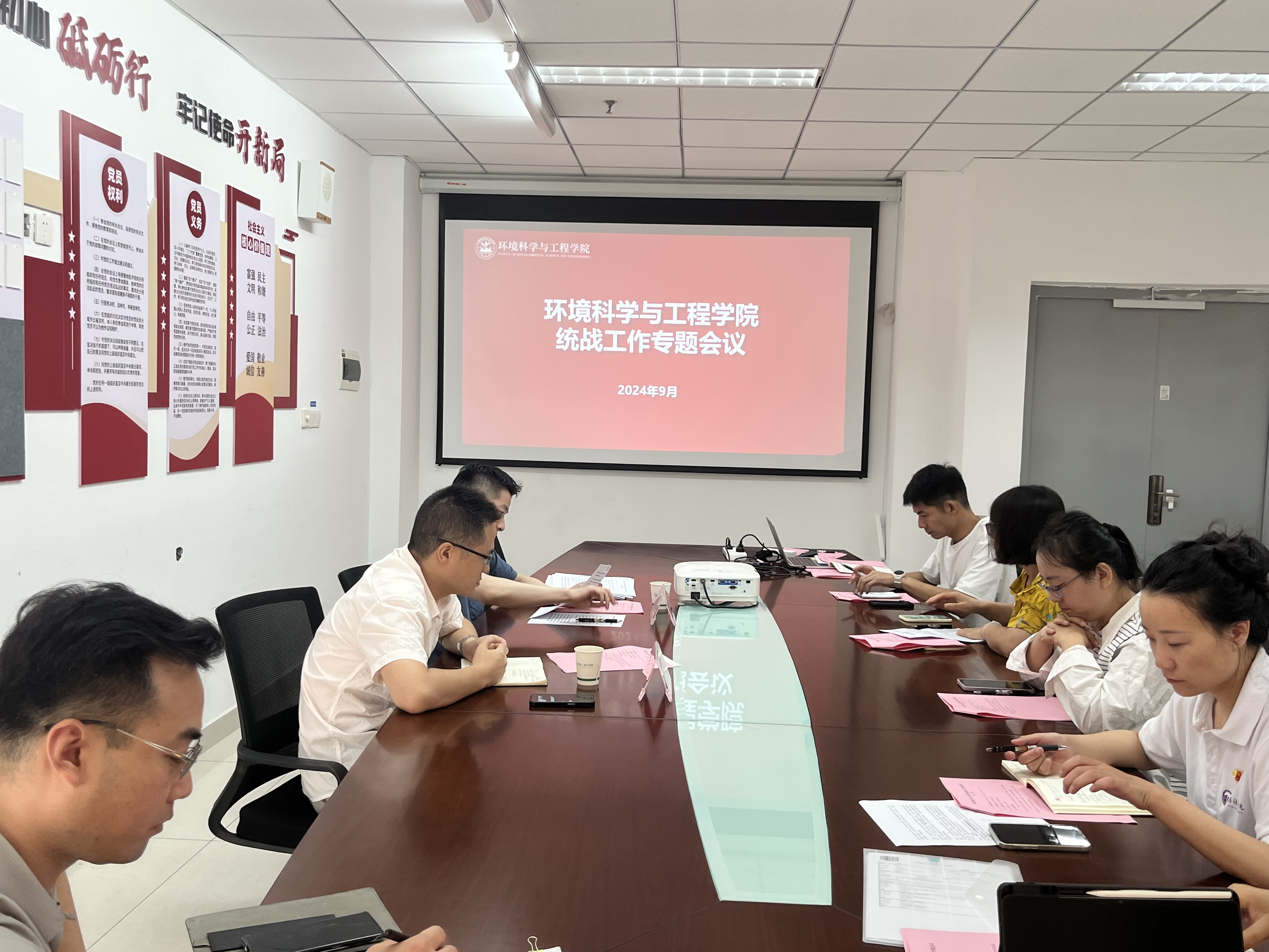 9月18日下午,环境科学与工程学院统战工作专题会议在尚诚楼301举行,全体教职工出席,党总支副书记姜欢主持会议。