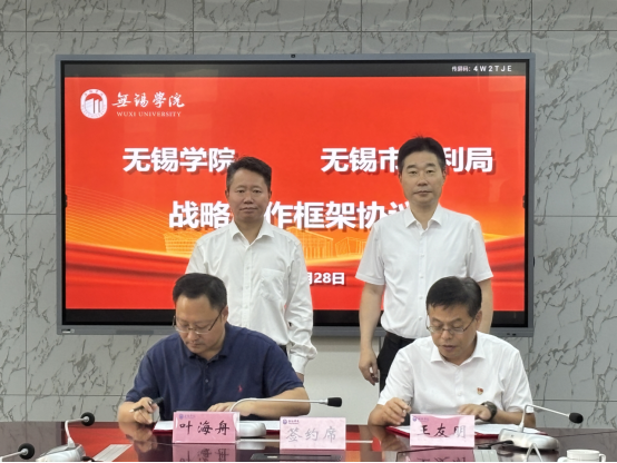 为深化校地合作,加强人才培养,提高重点河湖治理质效,6月28日上午,我校和无锡市水利局在行政楼327举行战略合作框架协议签约暨河湖长制研究院共建仪式。无锡市水利局局长张海泉,副局长叶海舟,河长制处处长陈建飞,我校党委书记杨建新,纪委书记王友明,副校长胡剑凌出席活动,环境工程学院院长钱杰书、院长助理卜久贺等参加活动。活动由王友明主持。