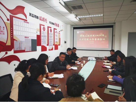 为深入贯彻人才强校战略,全面推进2024年度高层次人才引进工作,3月6日下午,我院在301会议室举行人才引进专项工作会议。环境工程学院院长钱杰书,党总支副书记姜欢,院长助理卜久贺、吴丹及全体教职工参加会议。会议由卜久贺主持。