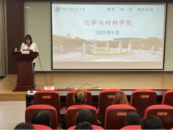宣讲会前,吴丹老师代表学院向邵高峰副教授来访表示热烈欢迎,希望通过此次宣讲会帮助同学拓宽视野,明确考研专业方向。邵高峰首先介绍了南京信息工程大学的基本情况、研究生培养以及奖助体系,详细介绍了化学与材料学院的专业建设情况、实验室建设情况、教学科研团队及教学理念,特别介绍了化材院2024年的研究生招生计划、报考条件和录取流程。他鼓励广大立志考研的同学尽早做好考研规划,明确考研目标,选择合适的院校与专业,最终取得考研胜利。