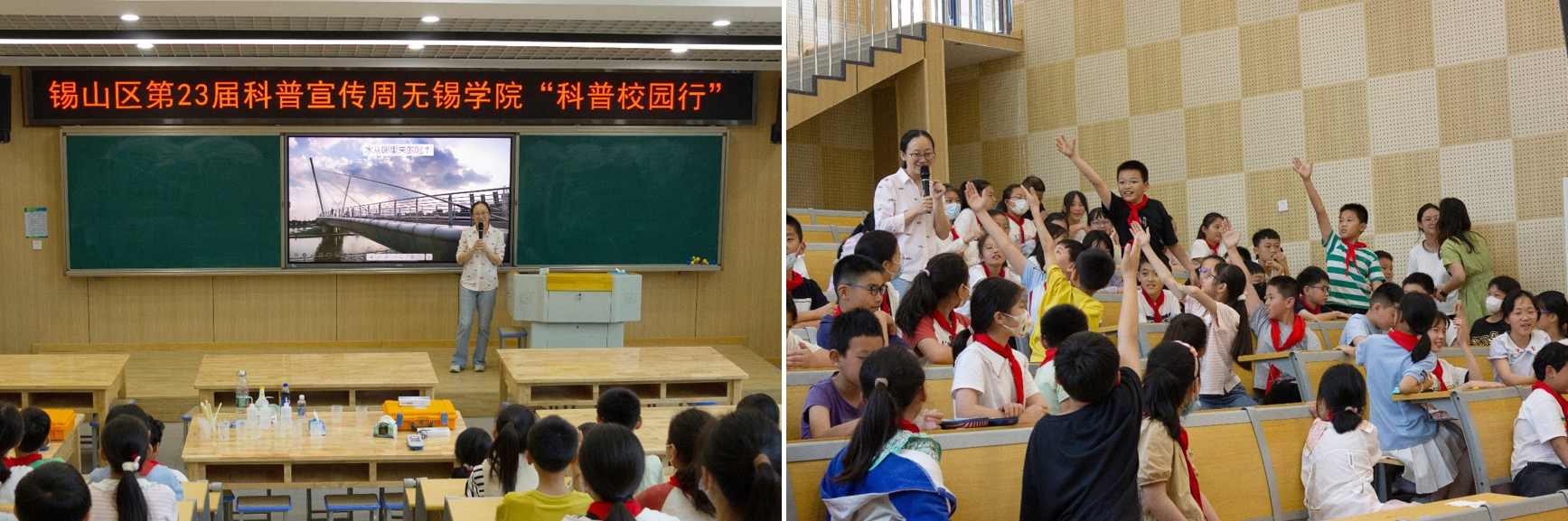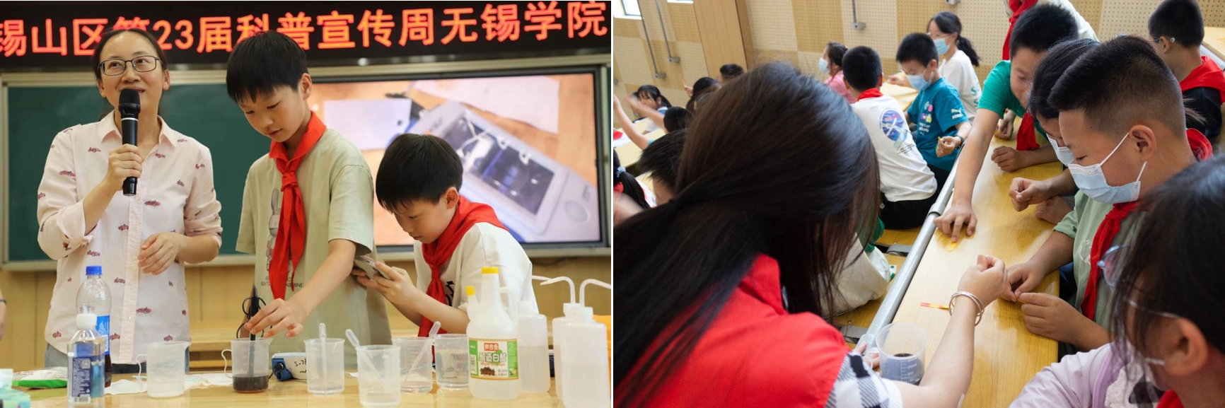 为进一步贯彻落实习总书记“绿水青山就是金山银山”的生态理念,引导青少年了解水循环的奥秘和水资源保护的重要性,5月31日下午,无锡学院环境工程学院“零碳先锋”小分队与锡山区科协、无锡学院知识分子联谊会共同前往锡山实验小学,开展“趣味化学,保护水质”水知识科普活动,环境工程学院杨孟老师担任此次活动主讲人。