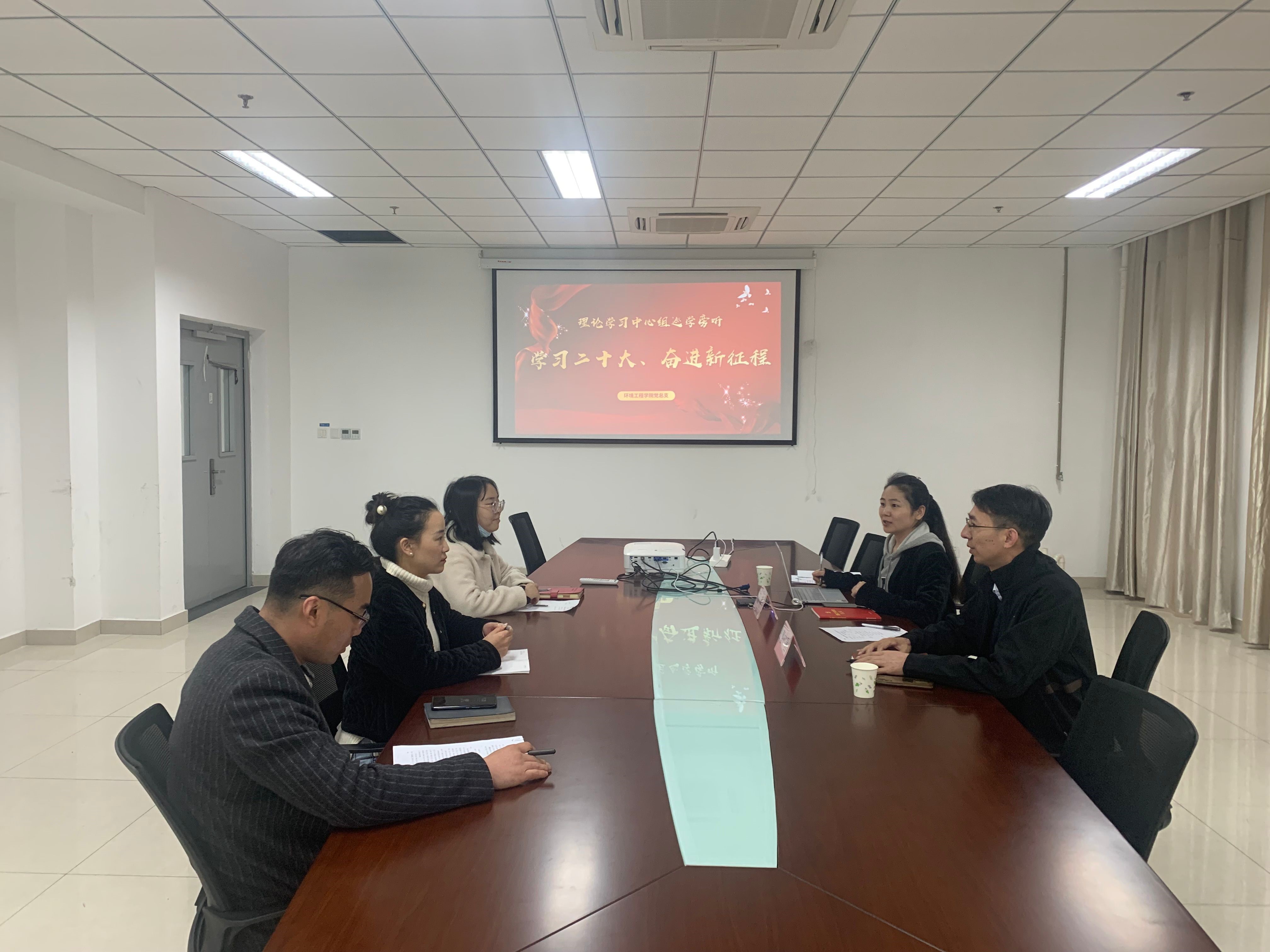 会议由环境工程学院负责人王霞主持。她首先领学党的二十大报告的重要内容,并进行了党的二十大报告知识竞答。在解读关于党的“自我革命”、“生态环境安全”、“世界经济新格局”等主题内容时,与会人员结合工作,将理论学习与“我为师生办实事”、“美丽河湖”和“自正衣冠——防止形式主义官僚主义”等活动进行了对照讨论和充分交流。会议内容丰富充实,气氛热烈。