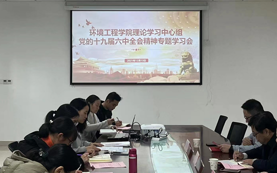 为贯彻习近平总书记在党的十九届六中全会上的重要讲话和全会精神,环境工程学院理论学习中心组于12月13日下午3:00在尚诚楼202召开了专题学习会,校纪委书记王友明莅临我院指导工作。环工院党总支书记李沛武、党支部书记王霞以及学院全体党员参加此次会议,会议由环境工程学院党支部宣传委员徐恬主持。