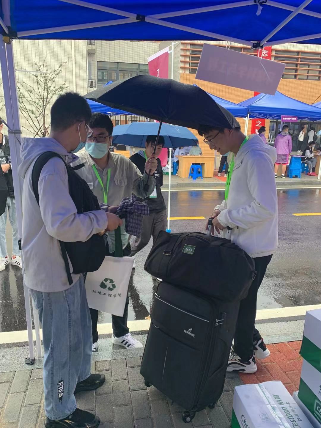 为做好此次迎新工作,我院提前部署,为新生贴心的准备了特色环保挎包,以及历届优秀学子风采录、学校生活手册等新生大礼包。迎新当天,全体辅导员和迎新志愿者一早来到服务点,提前做好一切迎新准备。虽然天公不作美,但是志愿者们身披雨披、风雨无阻,服务热情周到,为同学们搬行李、找宿舍、导方向,贴心解答同学们入学后遇到的各种问题,让新生们刚一到校就置身于温馨和谐的氛围中,感受到了“第二故乡”的温暖。