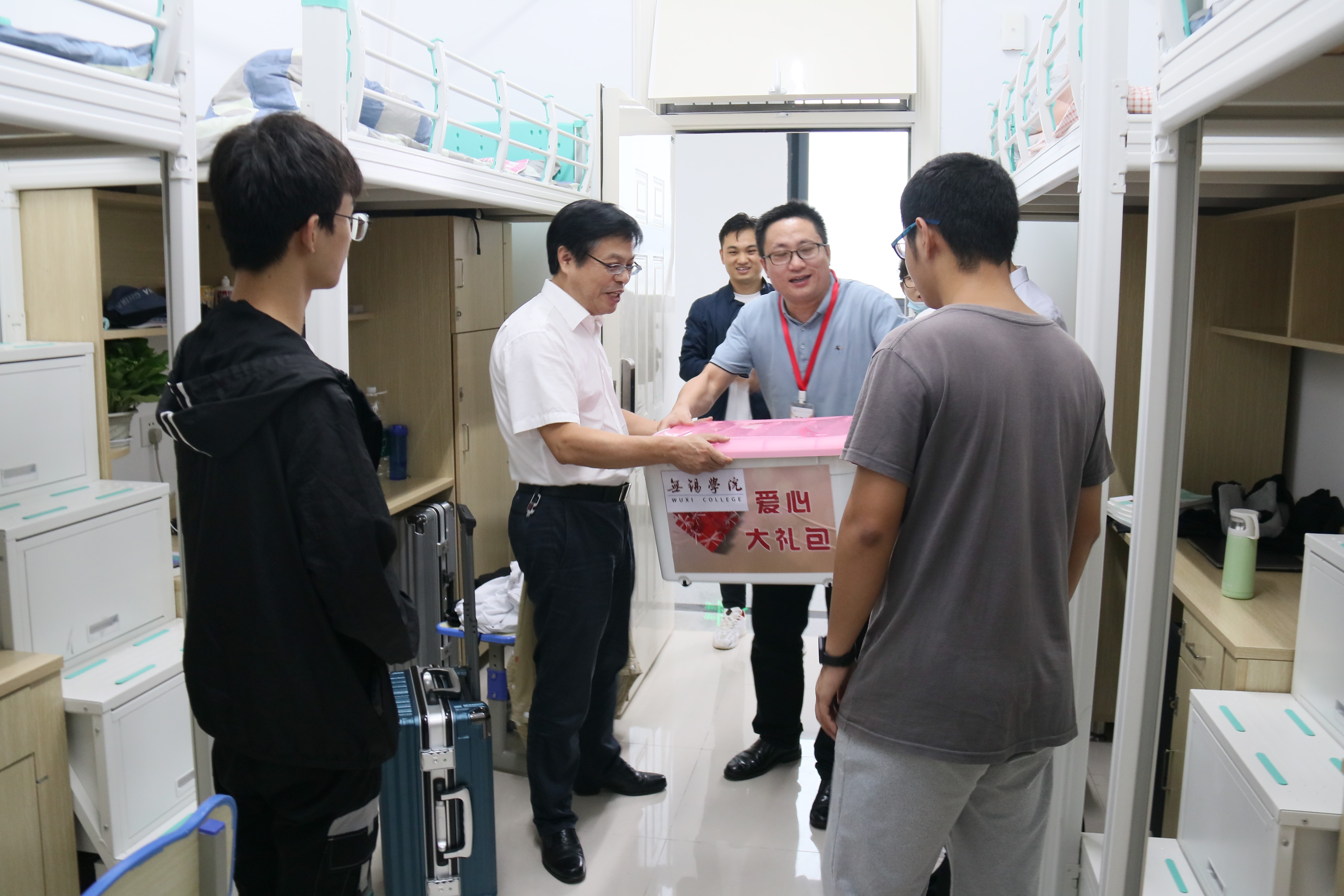 报到当天晚上,学院领导深入学生宿舍看望慰问新生。杨建新书记、匡辉书记从专业学习、生活等方面与新生们交流,询问新生对校园生活环境的意见建议,提醒学生注意安全防范。第二天下午,王友明书记、李沛武书记等对家庭困难的同学送去学校的关怀,并致以亲切的慰问。通过走访进一步增强了新同学的归属感,密切了家校联系。