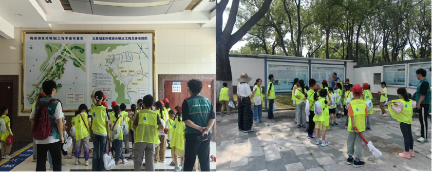 在梅梁湖泵站中,讲解员介绍着水泵工作原理。该工程是无锡水环境综合治理的骨干工程,研学人员通过学习参观,了解生态调水全过程。在犊山水利工程站,讲解员结合墙上图片,带领研学成员感受着无锡治水工作的成效。研学过程中,讲解员提问着相关的知识点,研学成员积极回答,在欢乐的互动中,研学成员将水治理知识牢记于心,将绿色理念扎根于心。