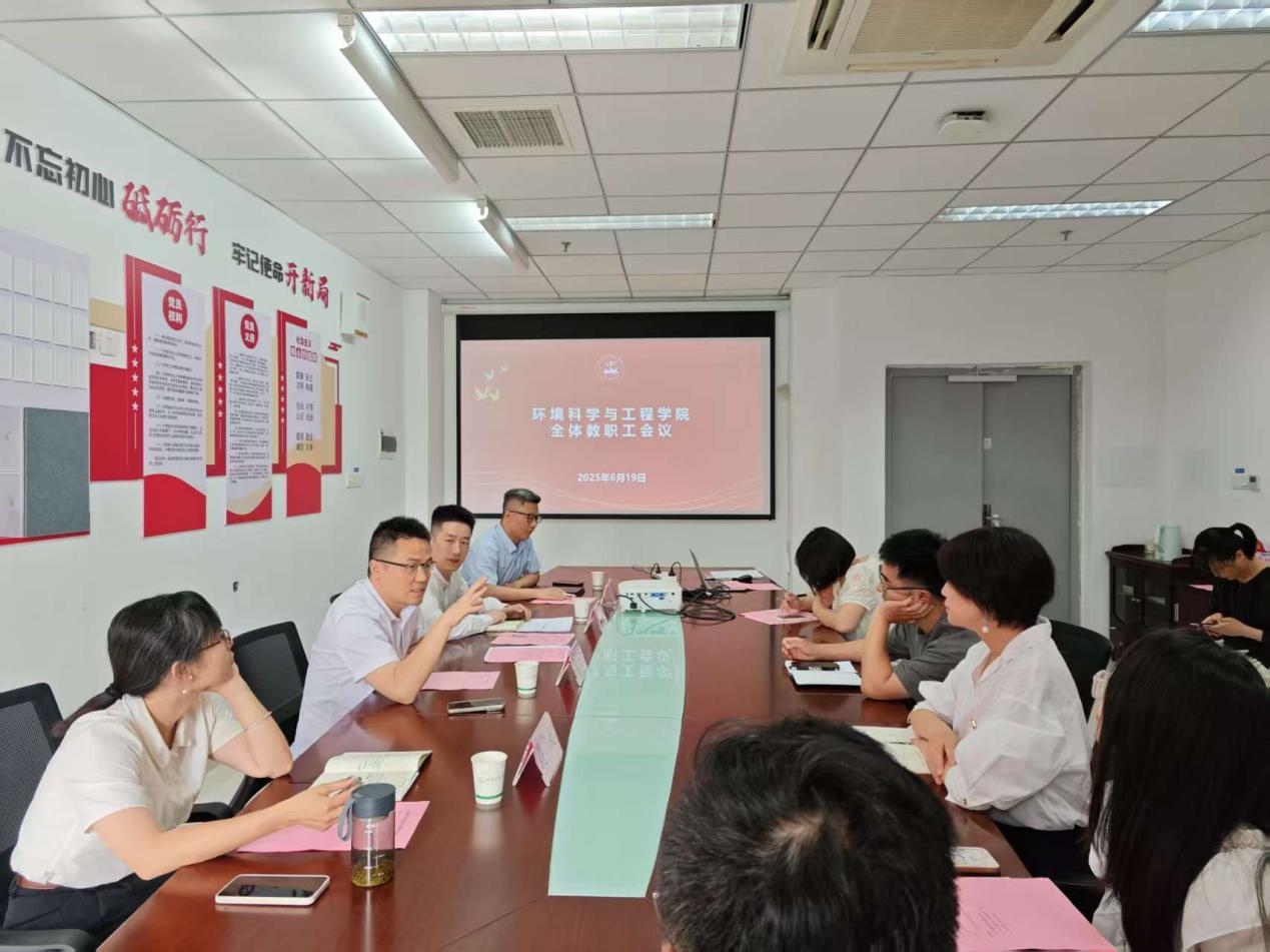 为进一步推进学院治理体系和治理能力现代化,明确教学管理规范,提升人才培养质量,6月19日下午,环境科学与工程学院在尚诚楼301会议室召开全体教职工会议。院长钱杰书,党总支副书记姜欢,副院长符波以及学院全体教职工参加会议。会议由姜欢主持。