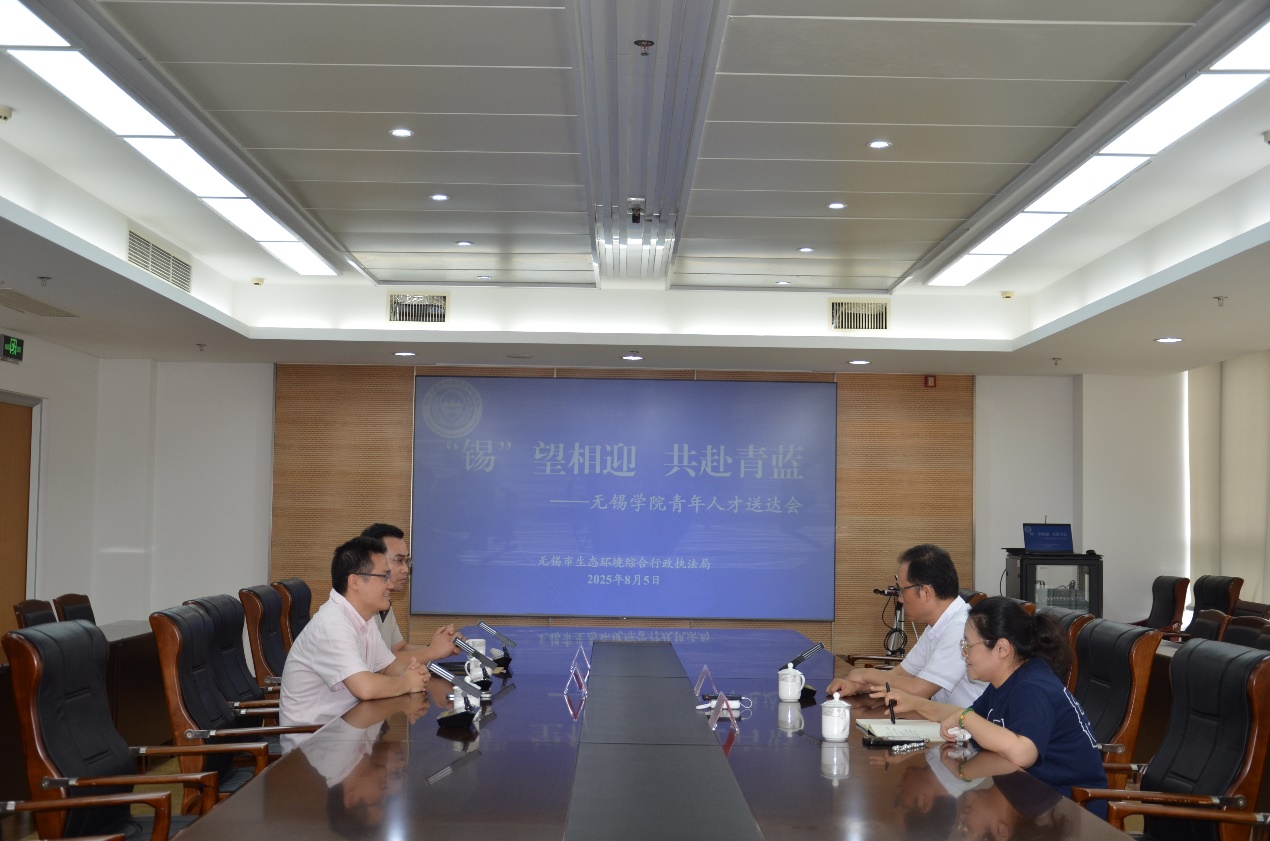 为贯彻实施“应用型、创业型”人才为主要目标的人才培养战略,着眼市场需求,服务地方社会经济发展,培养多层次人才,提供创新应用成果。2025年8月5日,我校选派环境科学与工程学院青年教师王涛博士赴无锡市生态环境综合行政执法局挂职锻炼。无锡学院环境科学与工程学院院长钱杰书、教师王涛,市生态环境综合行政执法局局长萧宇青、办公室主任孙怡出席送任会。
